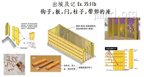 摩西没有提到帐幕的规格材料样式,多大多宽,用什么质料花色,怎么织,怎么连,这些细节在开工前,摩西会直接告诉那些选出来的工匠。然后是竖版和所有相关配件,“钩子、板、闩、柱子、带卯的座” (35:11b)